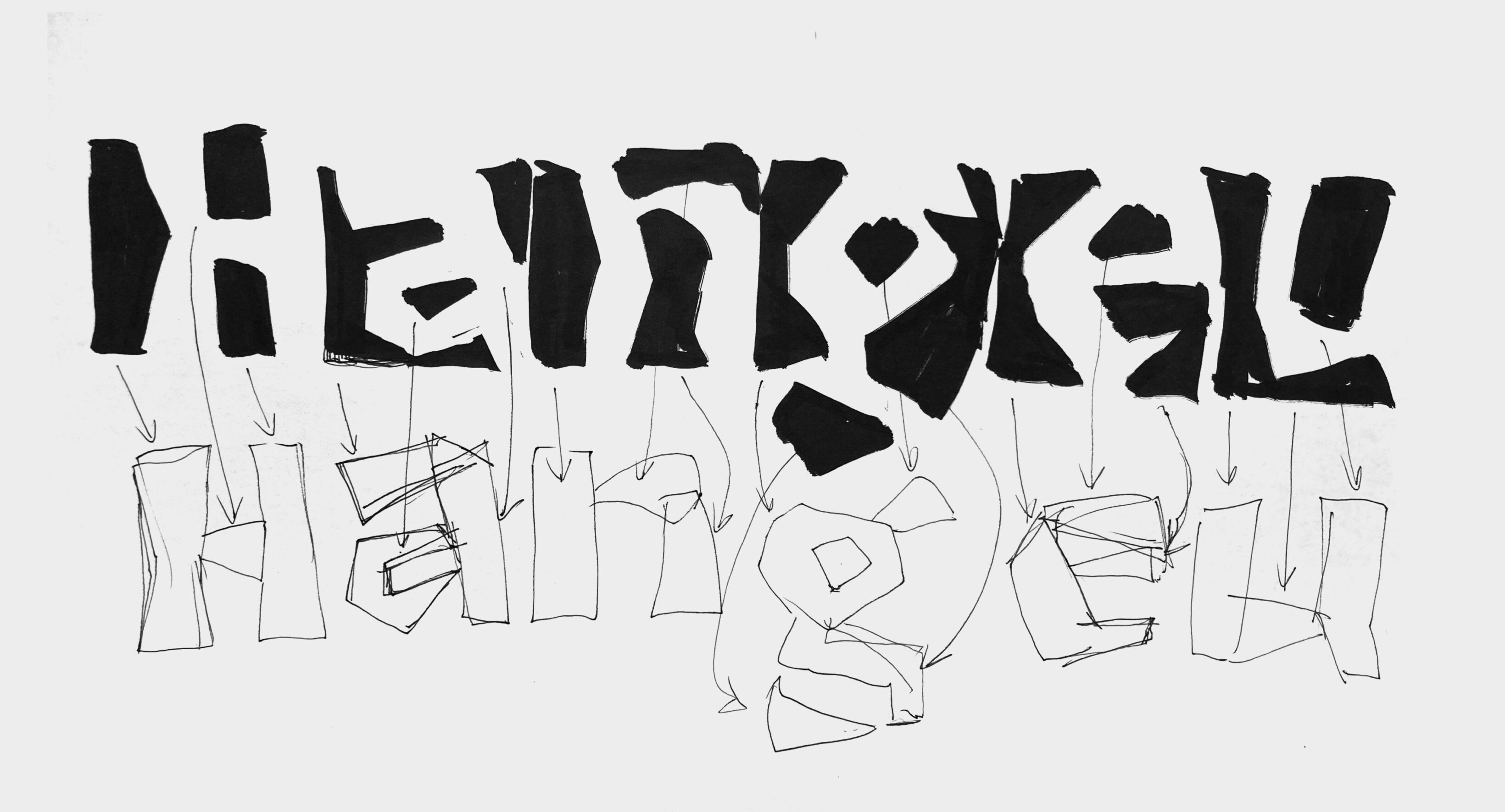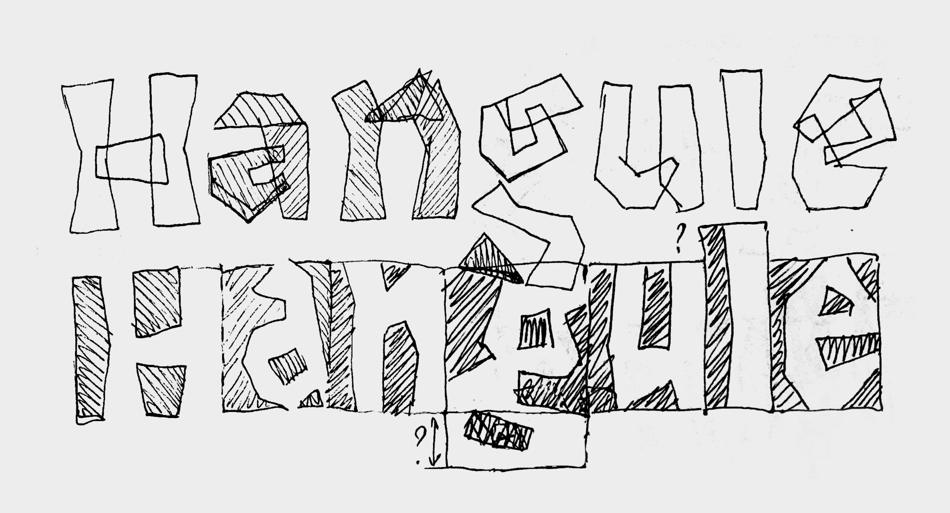 I continued sketching and refining this idea into letters within a word. While analyzing the drawings, I realized that traditional sidebearings on the left and right of a letter didn’t work well for the White style (where the counter-shapes are filled). It didn’t make sense to split the black shape and place it around the letter—black became a visible and meaningful form in itself. To maintain correct spacing, I shifted each letter slightly to the right.