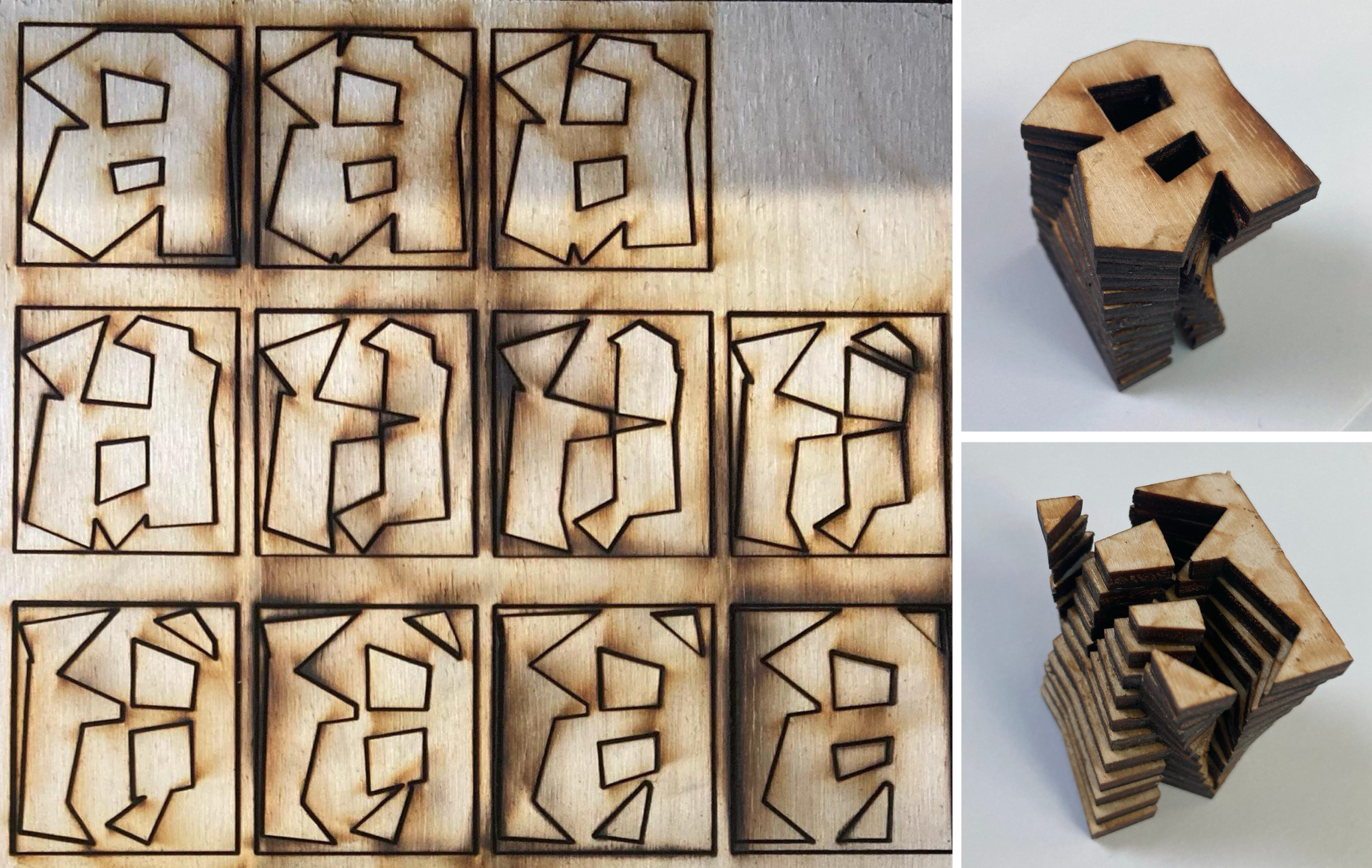 While working with variable fonts using weight or width axes, it’s usually easy to visualize the logic of transformation. But with Invert, only the start and end points are clear—everything in between feels like a mystery. To better understand this transition, I split the interpolation of the letter “a” into 11 intermediate steps, cut them out of plywood, and glued them together. The resulting 3D model gave me a clearer insight into how the shapes shift and evolve throughout the interpolation.