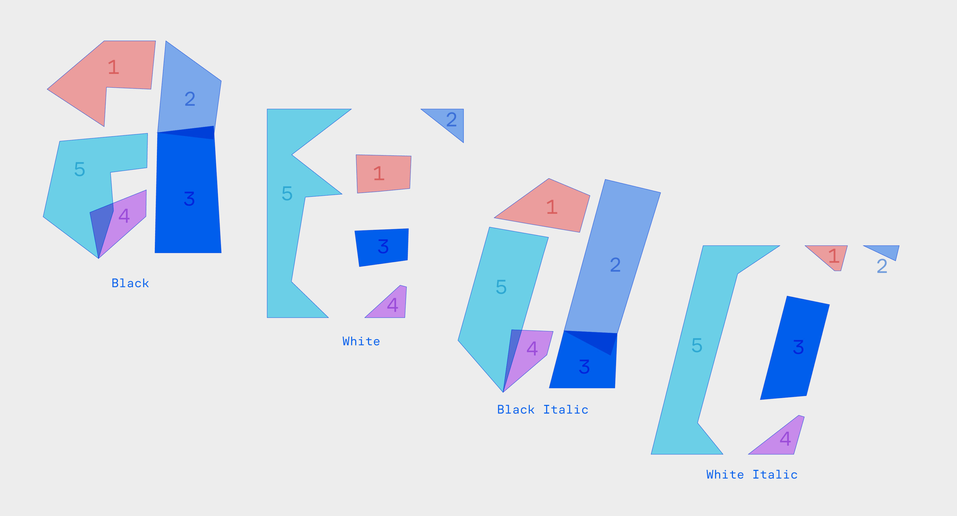 - A key principle was “duplex”—keeping character widths equal across Black and White styles. This ensure constant length of a text through the interpolation.